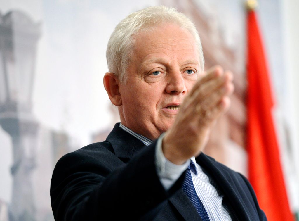 Tarlós István fõpolgármester a csepeli polgármesterrel tartott sajtótájékoztatón a városházán 2014. augusztus 25-én. Bejelentették, hogy felére csökkenti a zöldhulladék gyûjtésére szolgáló zsákok árát a Fõvárosi Közterület-fenntartó (FKF) Zrt.