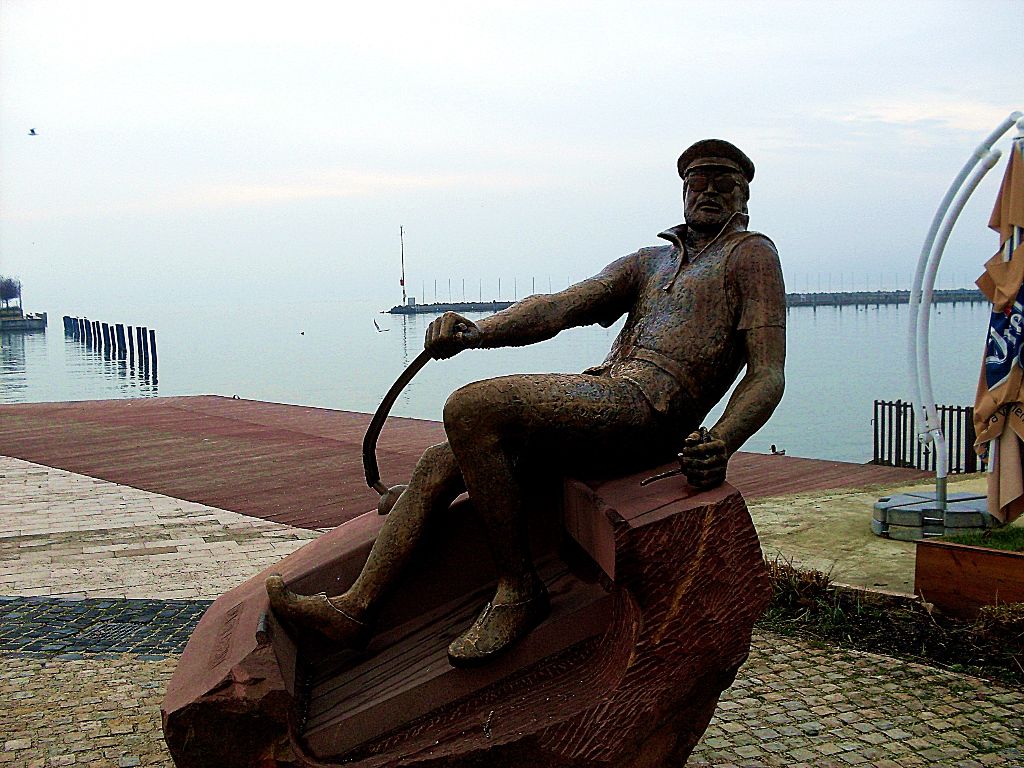 A sétány végén kezdődik a móló. Megállok a Bujtor István szobra előtt.