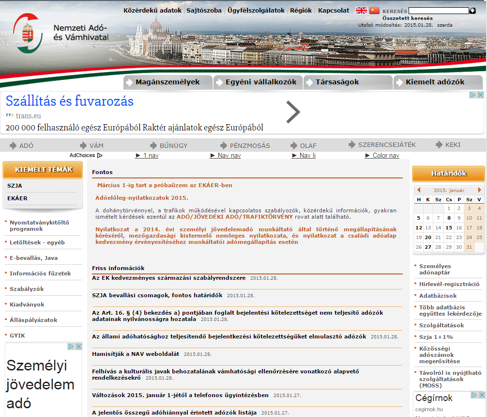 A NAV hivatalos weboldalához a megtévesztésig hasonló oldal jelent meg az interneten – figyelmeztetett az MTI-hez eljuttatott közleményében szerdán Nemzeti Adó- és Vámhivatal.