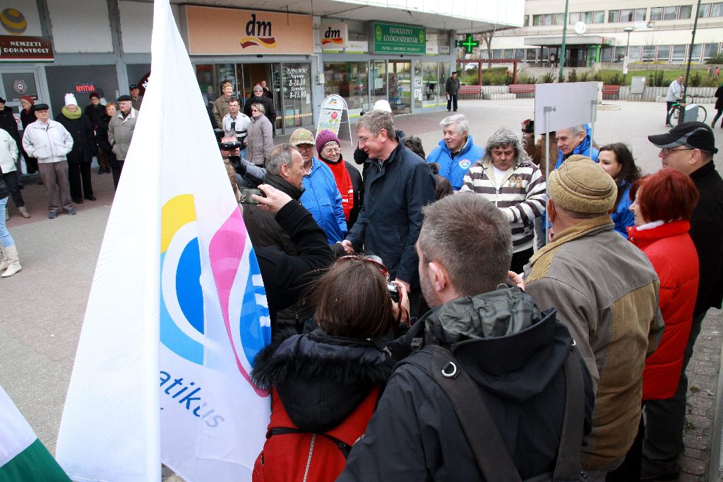Az utcafórumon összegyűltek előtt az MSZP elnökhelyettese, Gőgös Zoltán azt mondta, a baloldalnak csak szövetségben van esélye. Emlékeztetett arra, hogy ilyen szövetséget hoztak létre Veszprémben, egy másfajta, “kicsit másképp gondolkodó jelölt mögött”, és Ajkán is Pad Ferenc mögött. Ezt az összefogást jó mintának nevezte a jövőre nézve is.