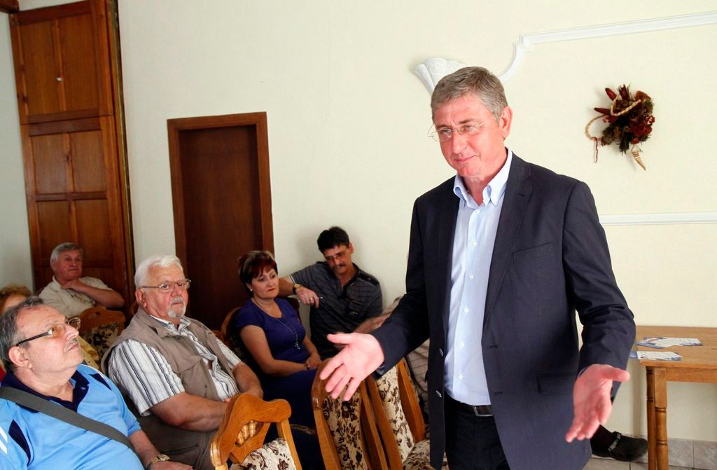 Mezõkövesd, 2015. június 2. Gyurcsány Ferenc, a Demokratikus Koalíció (DK) elnöke pártja Megélhetést! Biztonságot! elnevezésû országjáró turnéjának mezõkövesdi lakossági fórumán 2015. június 2-án. MTI Fotó: Vajda János