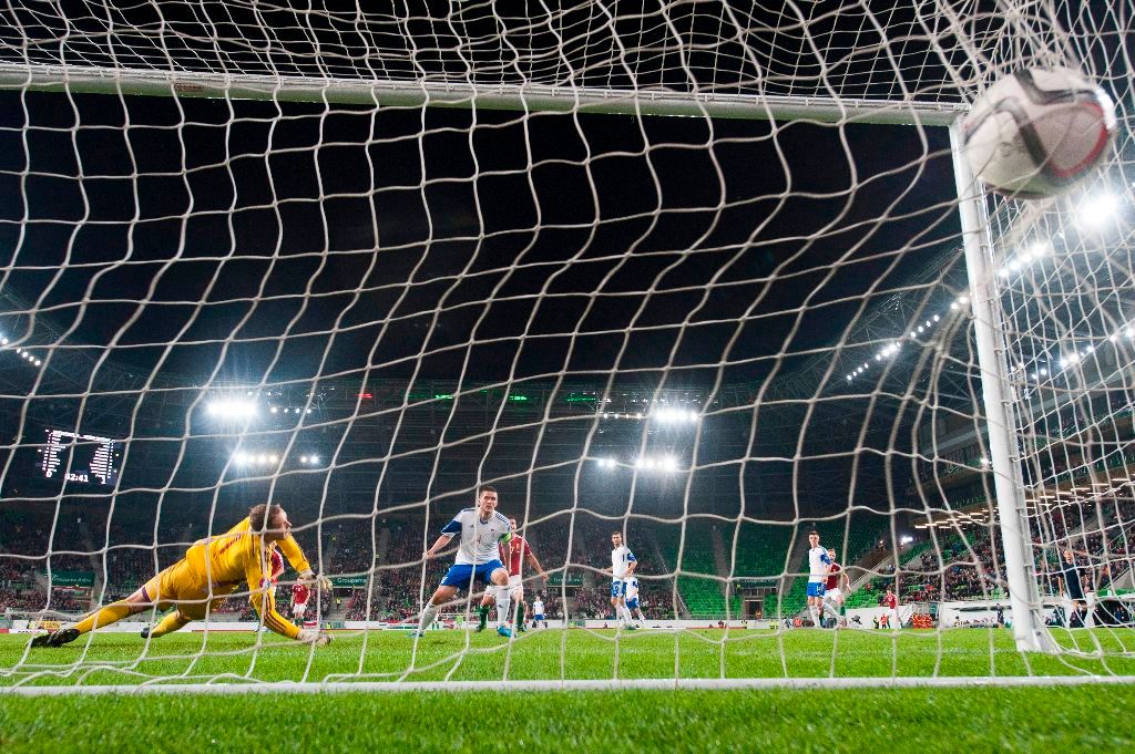 Böde Dániel (k) elsõ gólja a Magyarország – Feröer-szigetek labdarúgó Európa-bajnoki selejtezõmérkõzésen a Groupama Arénában 2015. október 8-án.