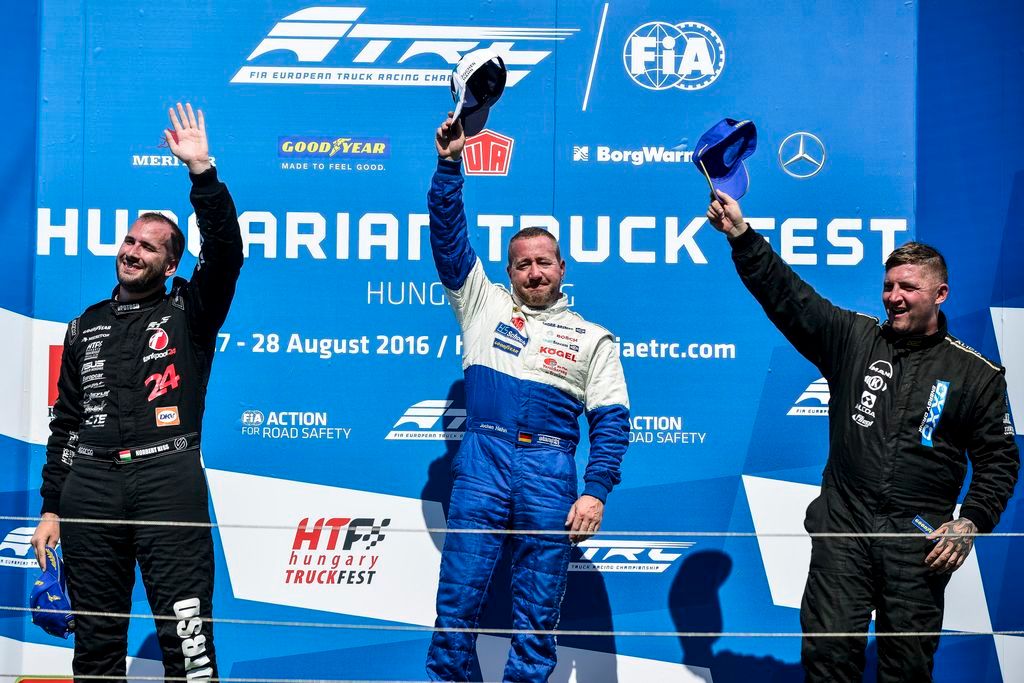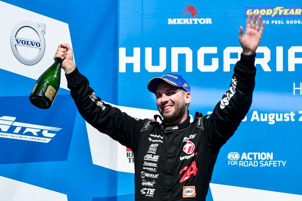 A címvédő Kiss Norbert, a Tankpool24-Mercedes magyar versenyzője harmadik lett a kamion Európa-bajnokság magyarországi állomásának szombat délutáni második futamán, a Hungaroringen.