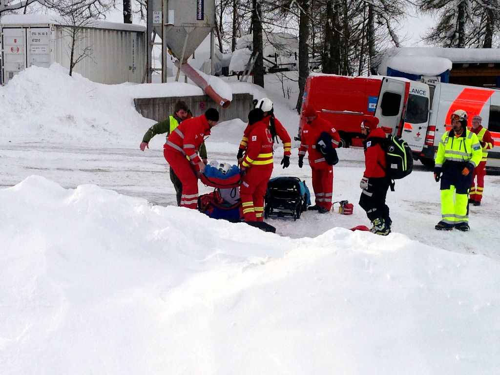 A Magyar Sí Szövetségtõl kapott fotón Miklós Editet a hordágyra emelik, 2017. január 15-én, miután bukott a nõi alpesi sí világkupa altenmarkt-zauchensee-i lesiklóversenyének edzése közben. A csíkszeredai születésû versenyzõt mentõhelikopterrel szállították a pongaui kórházba, ahol megállapították, hogy elszakadt a keresztszalagja a jobb térdében, emellett egy csontdarab letört a térdében, továbbá porcsérülést is szenvedett.
