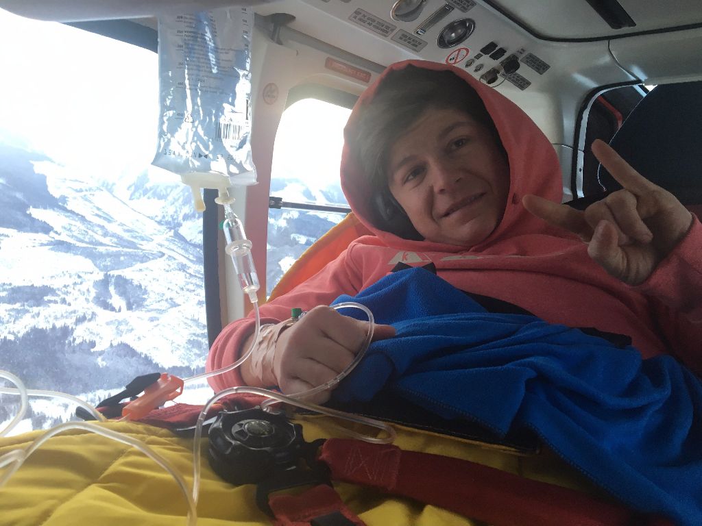A Magyar Sí Szövetségtõl kapott fotón Miklós Edit hordágyon fekszik a pongaui kórházban 2017. január 15-én, miután bukott és súlyosan megsérült a nõi alpesi sí világkupa altenmarkt-zauchensee-i lesiklóversenyének edzése közben. A csíkszeredai születésû versenyzõt mentõhelikopterrel szállították a kórházba, ahol megállapították, hogy elszakadt a keresztszalagja a jobb térdében, emellett egy csontdarab letört a térdében, továbbá porcsérülést is szenvedett.