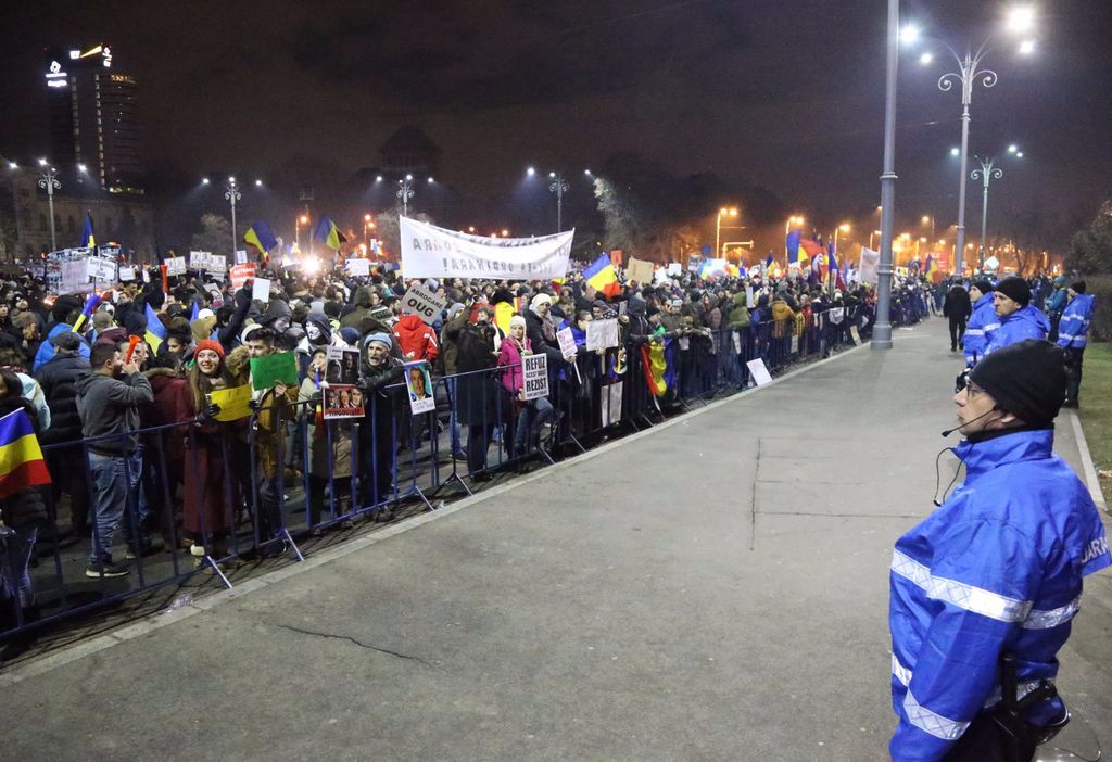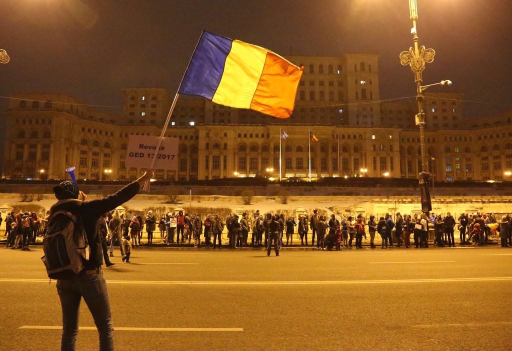A szociálliberális román kormány sürgõsséggel elfogadott, a büntetõ törvénykönyvet és a perrendtartást módosító rendelete miatt tiltakoznak tüntetõk Bukarestben 2017. február 4-én. Sorin Grindeanu miniszterelnök bejelentette, hogy a román kormány hatálytalanítani fogja a sürgõsségi rendeletet.