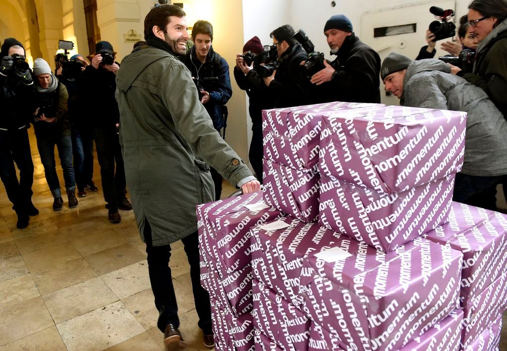 Összesen 266 151 aláírást adott le pénteken a Momentum Mozgalom az olimpiával kapcsolatos népszavazás érdekében – ezt Fekete-Győr András, a mozgalom elnöke jelentette be a Fővárosi Választási Iroda épületénél.