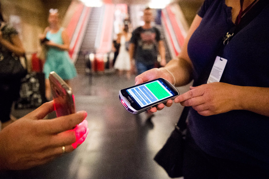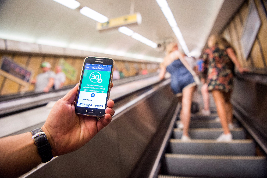 Utas új elektronikus bérletét ellenõrzi a Budapesti Közlekedési Központ (BKK) jegyellenõre Budapesten, a Deák téri metrómegállóban 2017. július 18-án. A napokban elindította a BKK az online jegy- és bérletvásárlási felületet, amelyre a vásárlóknak minden nap be kell majd lépniük. Elõször teljes árú és tanuló, félhavi és havi Budapest-bérletek, 24, 72 órás és hetijegy vásárlására lesz lehetõség.