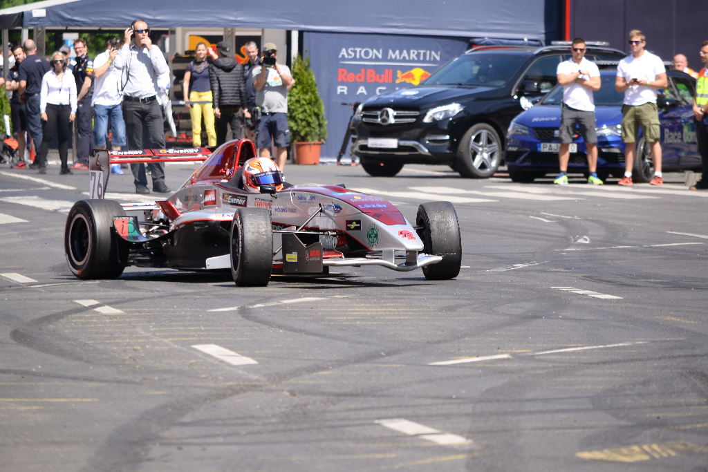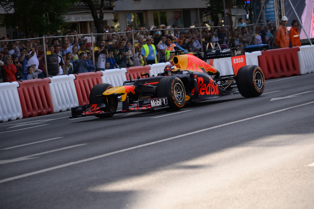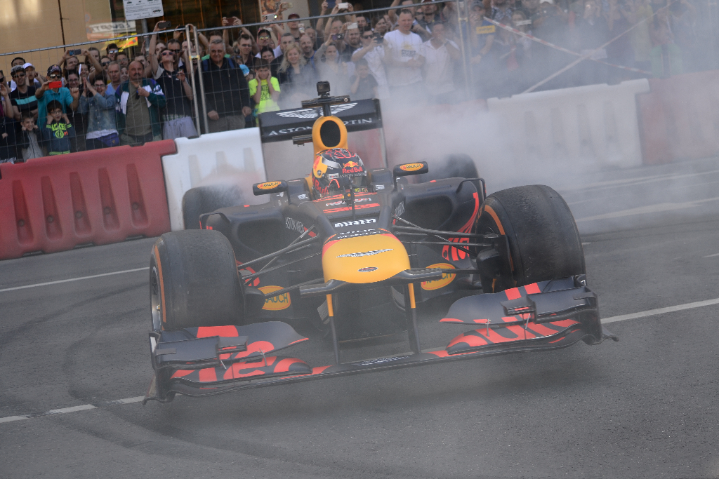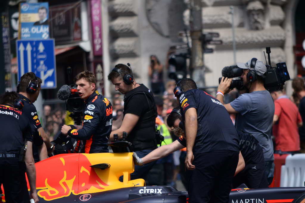 A program délelőtt az autó- és motorsport bemutatóval kezdődött az Erzsébet tér-Károly körút-Astoria-Ferenciek tere útvonalon kialakított “pályán”, a sztárvendég pedig Max Verstappen, a Forma-1-es Red Bull istálló holland pilótája volt, aki egy 2015-ös F1-es versenyautót vezetett.