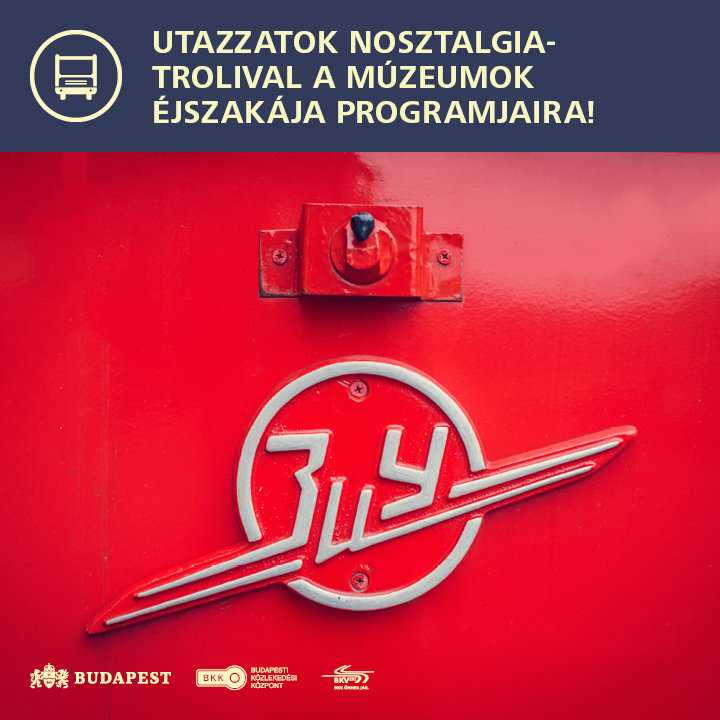 BKK: “A Múzeumok Éjszakája programjaira június 23-án (szombaton) a ZiU–9B nosztalgia-trolibusszal is eljuthattok, mely a 76-os és a 80-as járat összevont útvonalán közlekedik a Jászai Mari tér és az Örs vezér tere M végállomás között a Keleti pályaudvar érintésével. A járaton a nosztalgia-díjszabás érvényes (#jegyek)” target=”_blank”>https://bkk.hu/nosztalgia/ #jegyek). A nosztalgiajárművön kívül 18:00 és 02:30 között ebben az évben is járnak a Múzeumbuszok, hogy minél több helyszínre eljuthassatok. A rendezvényen részt vevő múzeumok belépőjegyét és a Múzeumbuszokon az ingyenes utazásra jogosító karszalagot megvásárolhatjátok a BKK Ügyfélközpontjaiban és kijelölt pénztáraiban, illetve a közreműködő múzeumokban. A Múzeumbuszok és a nosztalgia-trolibusz menetrendjéről az alábbi linken https://bkk.hu/menetrendek/ tájékozódhattok. A Múzeumok Éjszakája programjairól pedig a http://muzej.hu/ oldalon találhattok bővebb információt.
