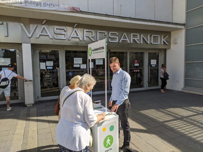 Az utóbbi évek és hónapok szomorú tendenciája, hogy az alapvető élelmiszerek, köztük a zöldségek és gyümölcsök árai lassan az egekbe szöknek, mondta az LMP két tagja, Kanász-Nagy Máté és Bajkó-Sokoray István, amikor sajtótájékoztatót tartottak és aláírásokat gyűjtöttek a Fehérvári úti vásárcsarnok előtt az alapvető élelmiszerek áfacsökkentése érdekében.