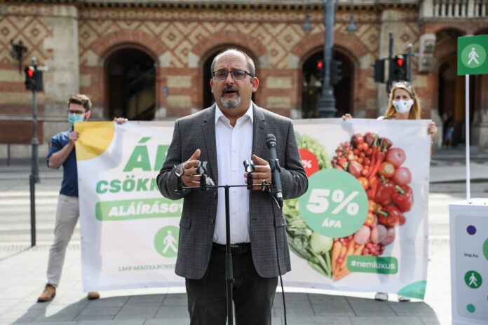 Országos kampányt indít az alapvető élelmiszerek áfa-csökkentése érdekében az LMP, melynek nyitó eseménye az a sajtótájékoztató volt, amit ma délelőtt tartott Csárdi Antal, a párt országgyűlési képviselője a Vámház körúti Vásárcsarnok előtt.