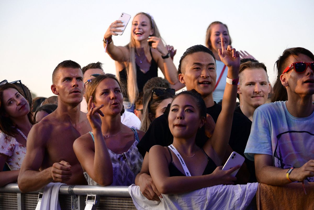 Egy dolog nem változott: a közönség. Sok fiatal, és örökfiatal, akik az elmúlt hónapokban-években ezekre a pillanatokra vártak és készültek, a tökéletes testek mutogatása mellett a menőbbnél menőbb napszemüvegek, cipők, csücsörítéses szelfik – utánozhatatlan Sound élmény, Pumped Gabó és Voksán Virág hasonmásokkal.