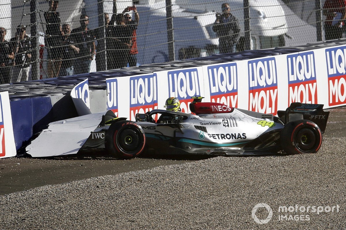 Lewis Hamilton és George Russell is súlyos balesetet szenvedett a pénteki Q3-as edzésen a kvalifikáción, előbbi pedig kénytelen volt átülni a tartalék futóműre, amelyet szombat délelőtt építettek fel számára.