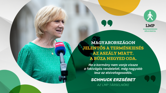 Az ellenzéki politikus azt mondta, néhány hete jelent meg az erdőpusztítást is megengedő rendelet, ám a kormány azóta sincs tisztában az erdő fontosságával, azzal, hogy ez milyen jelentősen befolyásolja jövőnket, nem törődik az erdő immateriális fontosságával, és cinikusan átlép azokon, akiknek fontos az erdővédelem. Nem látja, hogy az erdőnek milyen jelentős szerepe van a hőháztartásban, a csapadék-visszatartásban és a csapadékképzésben – sorolta Schmuck Erzsébet.Hozzátette: a kormány nem veszi komolyan azt, hogy ha erdeinket pusztítjuk, akkor az éghajlatváltozás tovább fog gyorsulni. Idén is megtapasztalhattuk, milyen hatással van ez nemcsak az életminőségre, de a gazdaságra is. Kelet- és Közép-Magyarországot nagyon komoly aszály sújtja, jelentős a terméskiesés, a búza 25 százaléka elveszett, és ha ilyen rendelteket hoz a kormány, akkor Magyarország még nagyobb része fog elsivatagosodni – mondta Schmuck Erzsébet.Kijelentette, nem lehet megengedni, hogy vágáséletkor előtt erdőket vágjanak ki, a kormánynak éppen arra kellene törekednie, hogy minél nagyobbak legyenek tájhonos, természetes erdőink, mert csak ezek a klímavédő erdők.Hozzátette: az LMP követeli a kormánytól, hogy azonnal vonja vissza a fakivágással kapcsolatos rendeletét, nem elegendő miniszteri utasítás kibocsátása.