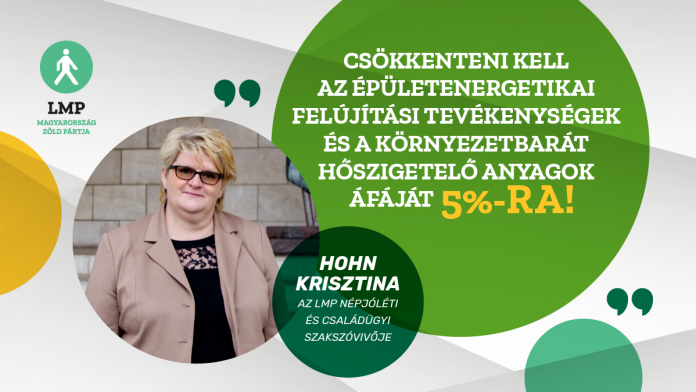 Hohn Krisztina, az ellenzéki párt népjóléti és családügyi szakszóvivője pénteki, online is követhető sajtótájékoztatóján kijelentette: a családok körében is fel kell mérni az energiaszegénység mértékét.A politikus a javaslataik között említette az épületenergetikai felújítási tevékenység valamint a környezetbarát hőszigetelő anyagok áfájának 5 százalékra csökkentését, és azt mondta: állami forrásból kellene korszerűsíteni az önkormányzati épületeket.Az LMP egy parlamenti határozati javaslatban a közvilágításra és más, növekvő rezsikiadásokra is pluszforrásokat javasol az önkormányzatoknak. Úgy folytatta: pártja a Magyar Önkormányzatok Szövetségének azon javaslatát is támogatja, amely szerint az önkormányzati rezsidíjakat is ársapkával kellene szabályozni.Az ellenzéki párt emellett kiszélesítené a szociális tűzifaprogramot, de a kéményseprésre is több állami forrást biztosítana, hogy minél több ellenőrzést lehessen végezni – mondta.Hohn Krisztina kitért arra: a helyhatóságoknak már eddig is spórolniuk kellett, mivel a kormány mostohagyerekként kezelte őket, további tartalékaik pedig nincsenek. Hangsúlyozta: egy 50 millió forintos költségvetésű önkormányzat nem tudja kigazdálkodni az eddigi 1,5 millió forintos közvilágítási számlájának a tízszeresét.