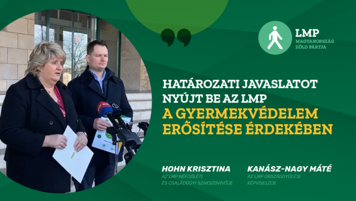 Kanász-Nagy Máté, az ellenzéki párt frakcióvezető-helyettese hétfői, budapesti sajtótájékoztatóján azt mondta: a szociális és gyermekjóléti rendszer megerősítése szolgálja a gyermekek védelmét, és nem a propaganda.Az LMP bízik abban, hogy az Országgyűlés konszenzussal fogadja majd el azon határozati javaslatukat, amelyben számos feladatra kérnék vagy szólítanák fel a kormányt – közölte az ellenzéki politikus, jelezve, hogy az 1997-ben született gyermekvédelmi törvényt erősítenék meg, ugyanis szerintük ez szolgálja a gyermekek védelmét, és nem a kormány “propagandatörvénye”.Javaslatuk tartalmáról azt mondta, növelni kell a szociális dolgozók bérét és az intézményi normatívát. A bér- és normatívaemelés szükségessége mellett pártja nem feledkezett meg arról sem, hogy a világjárvány alatt a szociális szféra nem kapott egyszeri, 500 ezer forintos juttatást – tette hozzá. hangsúlyozta, a veszélyben lévő gyermekek védelmét szolgáló jelzőrendszert is meg kell erősíteni. Annak nemcsak a szakmai intézmények, de mindannyian részesei vagyunk – jegyezte meg.Hohn Krisztina, az LMP népjóléti és családügyi szakszóvivője a gyermekvédelmi munkatársak megbecsülését emelte ki. Kiállt a családi pótlék emelésének szükségessége mellett legalább az infláció mértékében.