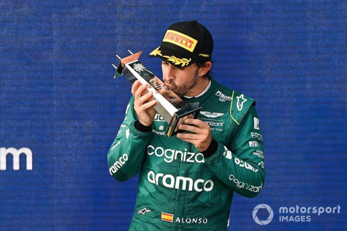 Alonso öt futam alatt a negyedik dobogós helyezését szerezte meg Miamiban, miután a Red Bull duója, Max Verstappen és Sergio Perez mögött magányosnak nevezte a harmadik helyet, ekkora volt az előnye a negyedik helyezett George Russell Mercedesével és az ötödik Carlos Sainz Ferrarijával szemben.