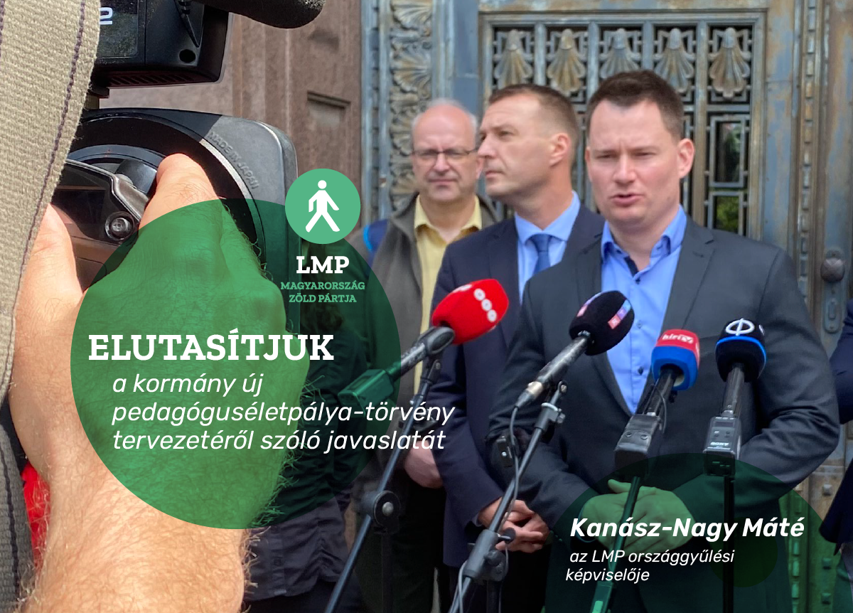 Kanász-Nagy Máté LMP-frakcióvezető-helyettes szerint azonnali béremelésre van szükség a közoktatásban, emellett szabadságot és autonómiát is kell biztosítani az ágazatnak. Leszögezte: ők is elutasítják, hogy az Európai Unióra kellene várni a béremeléssel. A státusztörvénnyel kapcsolatban azt mondta: új tervezetről kell tárgyalni és lehetővé kell tenni, hogy a tárgyalóasztalhoz mindenki hozzáférjen, aki érintett a közoktatásban.