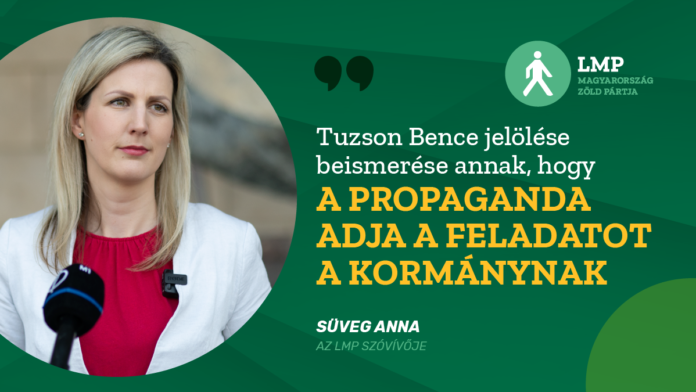 Az LMP szerint Tuzson Bence igazságügyi miniszterré jelölése beismerése annak, hogy a propaganda feladata már nem a kormánydöntések kommunikálása, hanem maga a propaganda adja a feladatot a kormánynak.