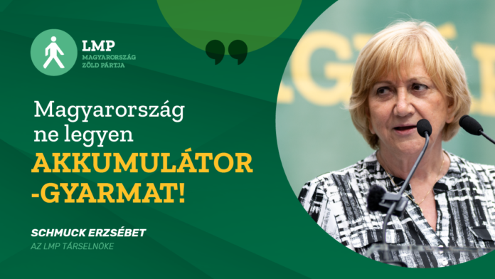 Magyarország nem lehet akkumulátorgyarmat, a kormány azonnal hagyja abba ezt az “őrületet”! – jelentette ki Schmuck Erzsébet, az LMP társelnöke budapesti online sajtótájékoztatóján csütörtökön.