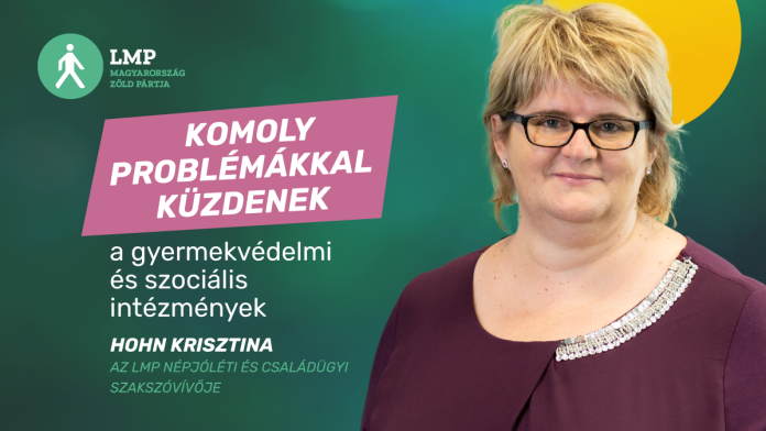 Számos ombudsmani vizsgálat bizonyítja, hogy komoly problémákkal küzdenek a gyermekvédelmi intézmények – mondta Hohn Krisztina, az LMP népjóléti és családügyi szakszóvivője Mikor lesz valódi előrelépés a gyermekvédelemben? című online sajtótájékoztatóján vasárnap.